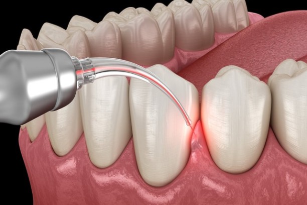 Removes excess or infected gum tissue to improve gum health.